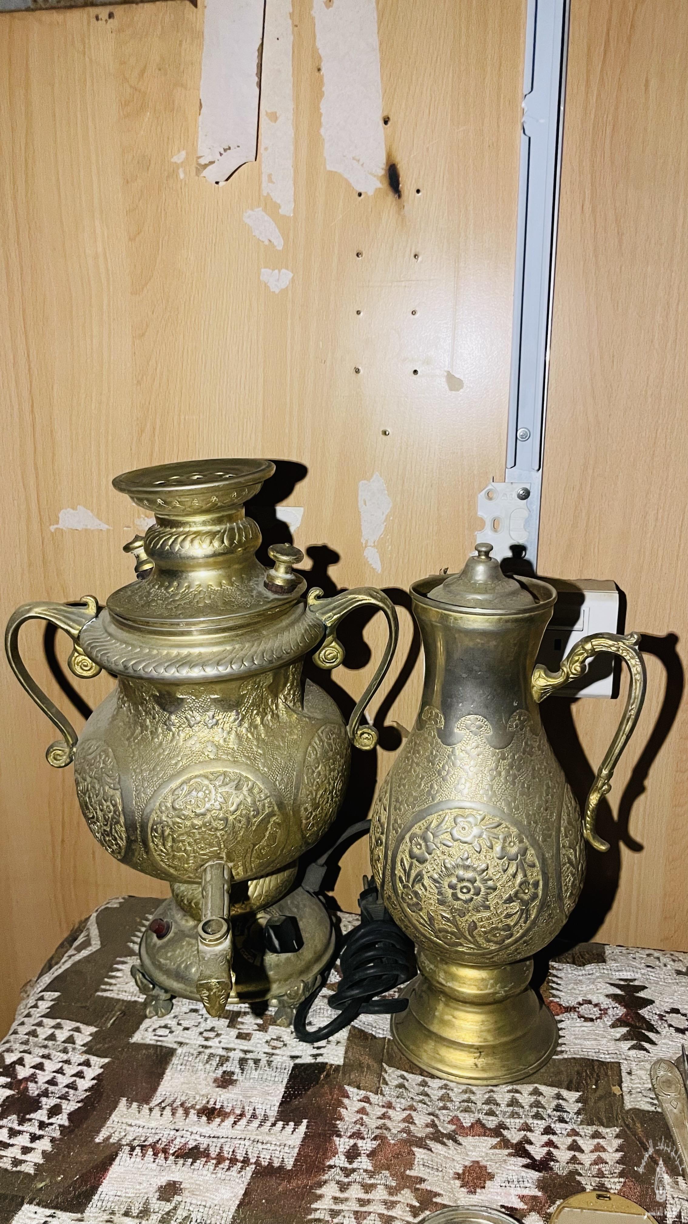 سماور ايراني شغل يدوي بالكامل النقش بارز حالته موضحه ف الفيديو الموقع جدة